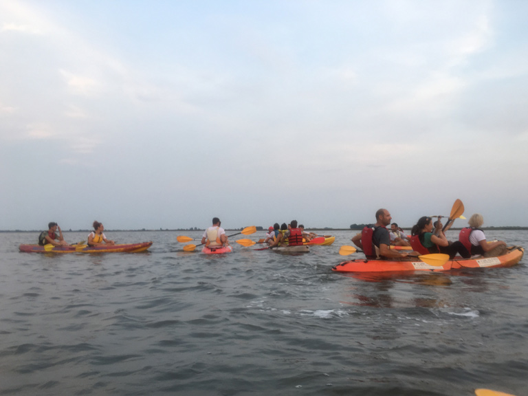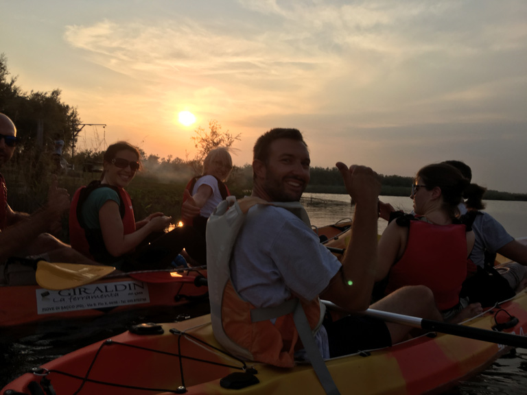 Ore 19.00 di una calda serata d’estate. Il tramonto è pronto a riflettere i suoi toni più caldi sulla laguna veneta che si presta da scenario alla nostra serata. Tutto è pronto e non ci resta che salpare verso l’orizzonte e godere dei suoni, dei profumi e dell’atmosfera che solo la laguna può offrire, lontano dal caos delle città e dalla vita di tutti i giorni.